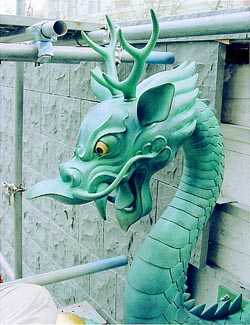協定公園の疎水に、おおきな龍の吐水口が取りつけられています。