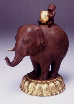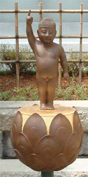 誕生童子の周りを4体の花祭り童子が囲んでいます。