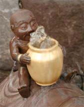 花祭りの童子からは、噴水のように水が出るようになっています。